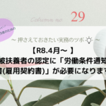 - 【コラム】R8.4月〜 被扶養者の認定に「労働条件通知書(雇用契約書)」が必要になります同居・別居、続柄の証明、年収要件の確認…扶養追加の手続きは、実務担当者にとって悩ましいものの一つではないでしょ… 続きを読む: 【コラム】R8.4月〜 被扶養者の認定に「労働条件通知書(雇用契約書)」が必要になります